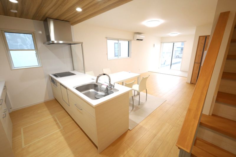 | 設備 | トイレ2ヶ所、浴室乾燥機、システムキッチン、IHクッキングヒーター、浄水器、食器洗浄乾燥機、ウォークインクローゼット、床下収納、洗髪洗面化粧台、照明器具、電気、上水道、下水道、複層ガラス、エアコン、モニタ付インターホン、駐車場2台分 | ||