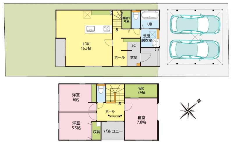 | 設備 | 温水洗浄便座、トイレ2ヶ所、浴室乾燥機、システムキッチン、IHクッキングヒーター、浄水器、食器洗浄乾燥機、ウォークインクローゼット、床下収納、洗髪洗面化粧台、照明器具、電気、上水道、下水道、複層ガラス、エアコン、インターネット、モニタ付インターホン、駐車場2台分 | ||