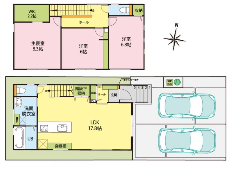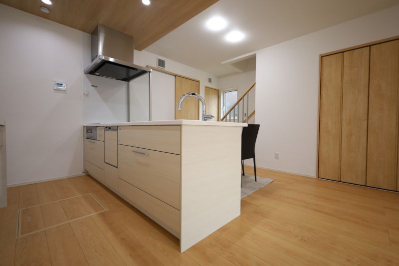 | 設備 | 温水洗浄便座、トイレ2ヶ所、浴室乾燥機、システムキッチン、IHクッキングヒーター、浄水器、食器洗浄乾燥機、ウォークインクローゼット、床下収納、洗髪洗面化粧台、照明器具、電気、上水道、下水道、複層ガラス、エアコン、インターネット、モニタ付インターホン、駐車場2台分、カーポート付 | ||