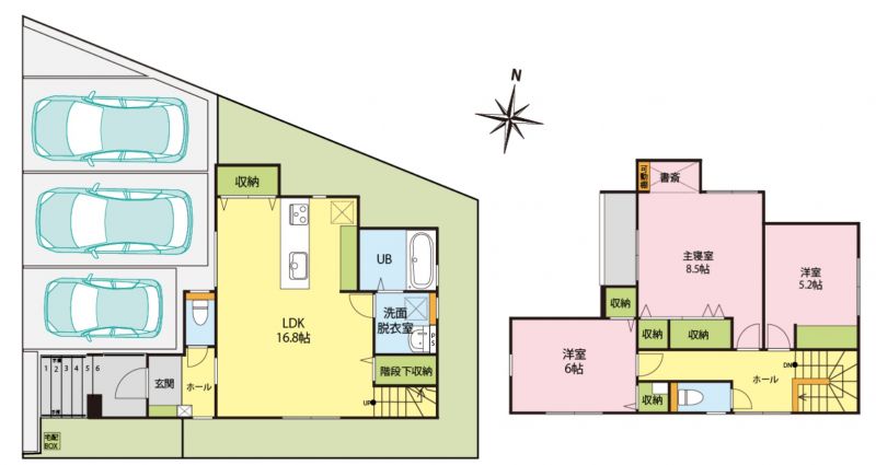 | 設備 | 温水洗浄便座、トイレ2ヶ所、浴室乾燥機、システムキッチン、IHクッキングヒーター、浄水器、食器洗浄乾燥機、ウォークインクローゼット、床下収納、洗髪洗面化粧台、照明器具、電気、上水道、下水道、複層ガラス、エアコン、インターネット、24時間セキュリティー、駐車場3台分、カーポート付 | ||