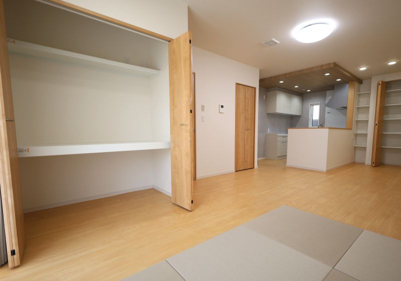 | 設備 | 温水洗浄便座、トイレ2ヶ所、追焚機能、浴室乾燥機、システムキッチン、IHクッキングヒーター、浄水器、食器洗浄乾燥機、ウォークインクローゼット、床下収納、洗髪洗面化粧台、照明器具、電気、上水道、下水道、複層ガラス、エアコン、インターネット、モニタ付インターホン、駐車場3台分、カーポート付 | ||