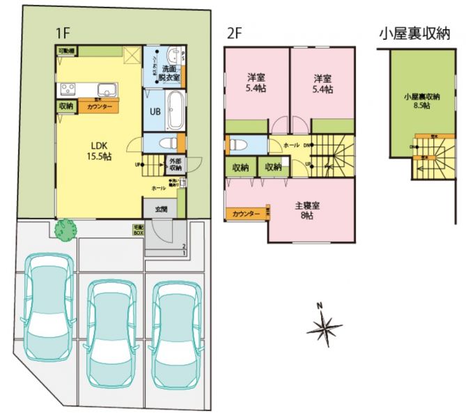 | 設備 | 温水洗浄便座、トイレ2ヶ所、追焚機能、浴室乾燥機、システムキッチン、IHクッキングヒーター、浄水器、食器洗浄乾燥機、ウォークインクローゼット、床下収納、洗髪洗面化粧台、照明器具、電気、上水道、下水道、複層ガラス、エアコン、インターネット、モニタ付インターホン、駐車場3台分、カーポート付 | ||
