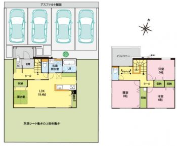 | 設備 | 温水洗浄便座、トイレ2ヶ所、浴室乾燥機、システムキッチン、IHクッキングヒーター、浄水器、食器洗浄乾燥機、床下収納、洗髪洗面化粧台、照明器具、電気、上水道、下水道、複層ガラス、エアコン、インターネット、モニタ付インターホン、駐車場3台分、駐車スペースは4台分停められます。 | ||