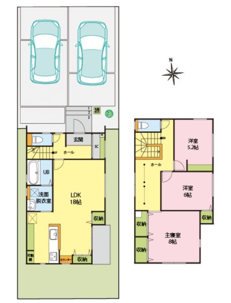 | 設備 | 温水洗浄便座、トイレ2ヶ所、追焚機能、浴室乾燥機、システムキッチン、IHクッキングヒーター、浄水器、食器洗浄乾燥機、床下収納、洗髪洗面化粧台、照明器具、電気、上水道、下水道、複層ガラス、エアコン、インターネット、モニタ付インターホン、駐車場2台分 | ||