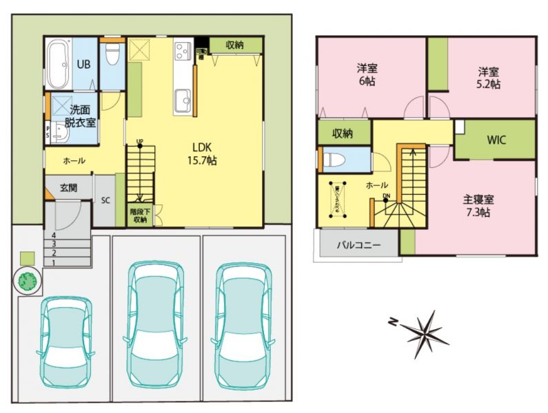 | 設備 | 温水洗浄便座、トイレ2ヶ所、追焚機能、浴室乾燥機、IHクッキングヒーター、浄水器、食器洗浄乾燥機、ウォークインクローゼット、床下収納、洗髪洗面化粧台、照明器具、電気、上水道、下水道、複層ガラス、エアコン、インターネット、モニタ付インターホン、駐車場3台分 | ||