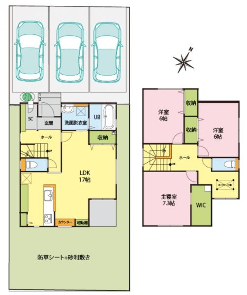 | 設備 | 温水洗浄便座、トイレ2ヶ所、追焚機能、浴室乾燥機、システムキッチン、IHクッキングヒーター、浄水器、食器洗浄乾燥機、ウォークインクローゼット、床下収納、洗髪洗面化粧台、照明器具、電気、上水道、下水道、複層ガラス、エアコン、インターネット、モニタ付インターホン、駐車場3台分 | ||