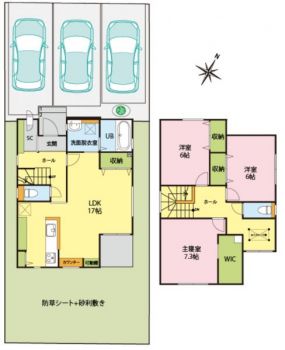 | 設備 | 温水洗浄便座、トイレ2ヶ所、追焚機能、浴室乾燥機、システムキッチン、IHクッキングヒーター、浄水器、食器洗浄乾燥機、ウォークインクローゼット、床下収納、洗髪洗面化粧台、照明器具、電気、上水道、下水道、複層ガラス、エアコン、インターネット、モニタ付インターホン、駐車場3台分 | ||