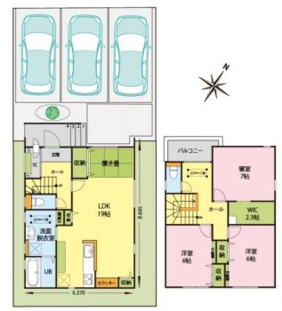 | 設備 | 温水洗浄便座、トイレ2ヶ所、追焚機能、浴室乾燥機、システムキッチン、IHクッキングヒーター、浄水器、食器洗浄乾燥機、ウォークインクローゼット、床下収納、洗髪洗面化粧台、照明器具、電気、上水道、下水道、複層ガラス、エアコン、インターネット、モニタ付インターホン、駐車場3台分 | ||