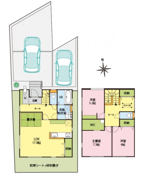 | 設備 | 温水洗浄便座、トイレ2ヶ所、追焚機能、浴室乾燥機、システムキッチン、IHクッキングヒーター、浄水器、食器洗浄乾燥機、ウォークインクローゼット、床下収納、洗髪洗面化粧台、照明器具、電気、上水道、下水道、複層ガラス、エアコン、インターネット、モニタ付インターホン、駐車場2台分 | ||