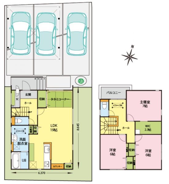 | 設備 | 温水洗浄便座、トイレ2ヶ所、浴室乾燥機、システムキッチン、IHクッキングヒーター、浄水器、食器洗浄乾燥機、ウォークインクローゼット、床下収納、洗髪洗面化粧台、照明器具、電気、上水道、下水道、複層ガラス、エアコン、インターネット、モニタ付インターホン、駐車場3台分、※2台用カーポート付 | ||
