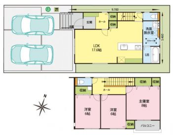 | 設備 | 温水洗浄便座、トイレ2ヶ所、追焚機能、浴室乾燥機、システムキッチン、IHクッキングヒーター、浄水器、食器洗浄乾燥機、床下収納、洗髪洗面化粧台、照明器具、電気、上水道、下水道、側溝、複層ガラス、エアコン、インターネット、モニタ付インターホン、駐車場2台分 | ||